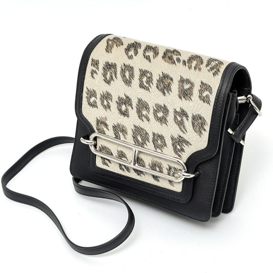 HERMES エルメス ロウリス・ルリ ミニ レオパード ショルダーバッグ ハラコ オフホワイト / ネイビー - 2520013