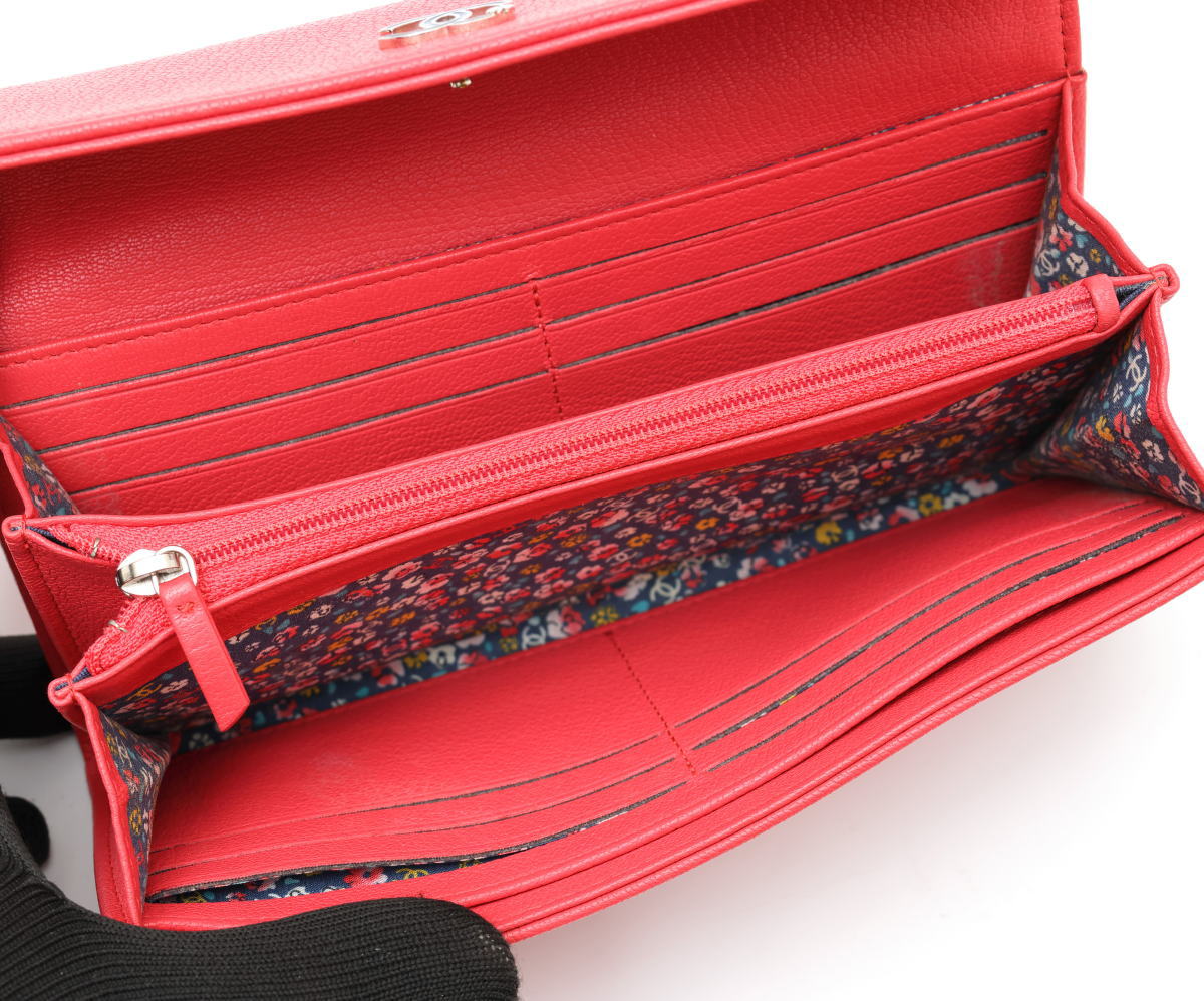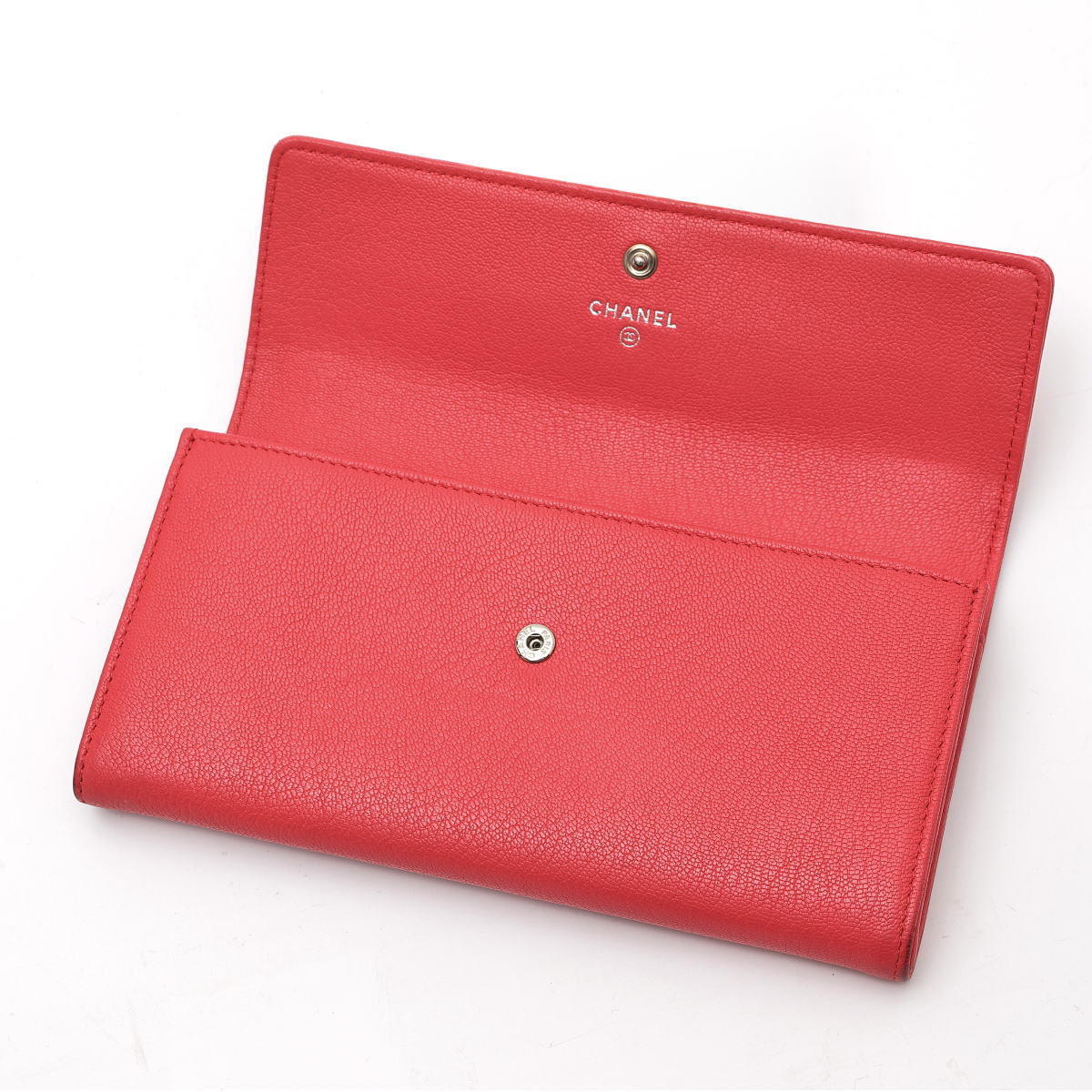 > CHANEL シャネル ココマーク カメリア フラップ ウォレット 長財布 A84203 カーフ ピンク 2520042